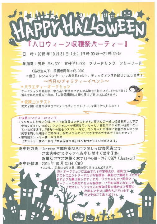 ドッグカフェジャストワン三郷店ハロウィンパーティー開催のお知らせ(2015/10/29)