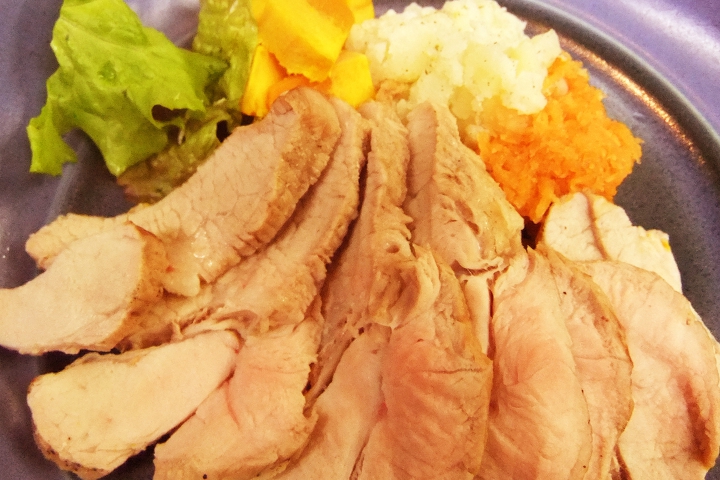 体を温めるローストポークとビタミンスープを作ります。ハーブや冬を温かく過ごすための調理の裏ワザ、などなど、バロンのしっぽのわんこご飯への思い入れを伝授します。