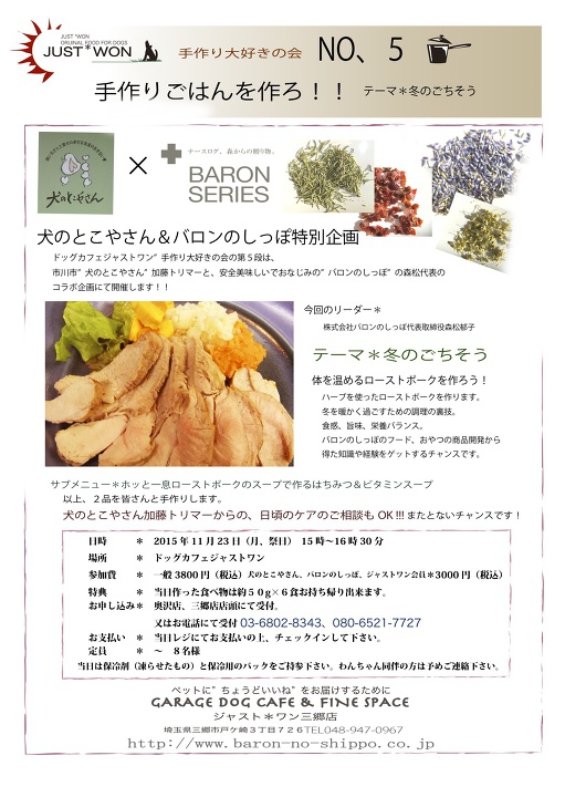 犬のとこやさん加藤トリマーにケアの相談、バロンのしっぽ森松に手作り食のポイントも聞けちゃう1度で2度おいしい企画です。