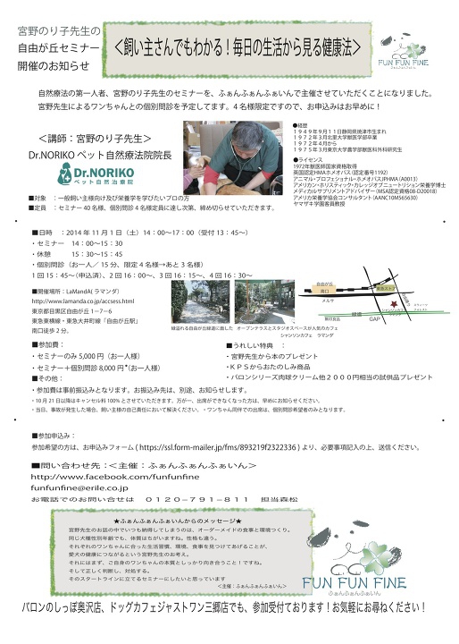 宮野のり子獣医師”飼い主さんでもわかる毎日の生活から見る健康法”セミナー(2014/11/02)